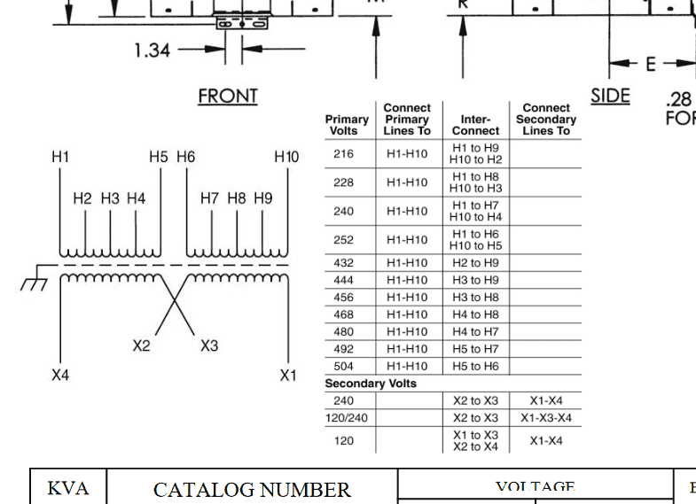 In particular the Secondary Volts table connections of X1, X2, X3, X4.