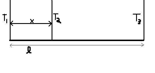Two of the strings are at either ends of the rod. The third string is a length x from the left end. Find the tension in these three strings.