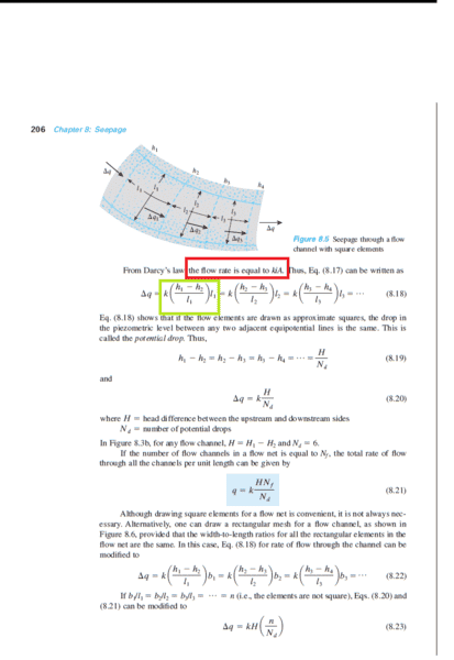 - A different participant clarifies that the area is oriented perpendicular to the direction of seepage, indicating that the other dimension extends "into the page," which relates to calculating seepage flow per unit width.