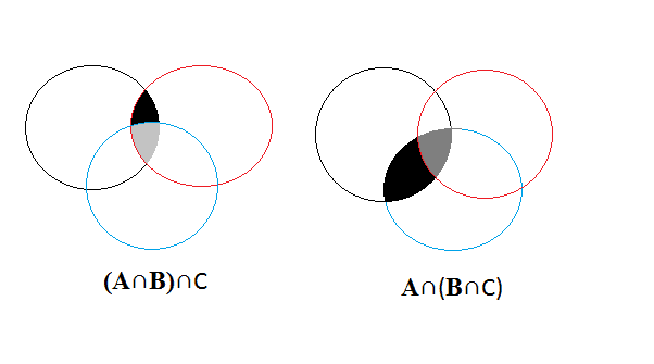 The discussion revolves around the associative axioms for real numbers as they relate to set operations, specifically focusing on the union and intersection of sets. Participants explore how to illustrate these concepts using Venn diagrams and discuss the distributive laws of intersection over union and vice versa. The conversation includes both mathematical reasoning and visual representation of set operations.