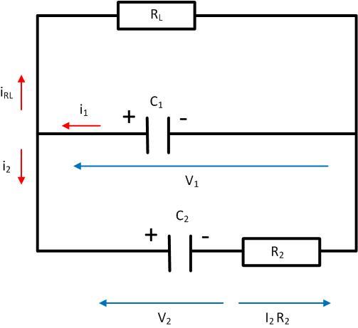 Are these equations and method of finding V1 and V2 as a function of time right? Thanks