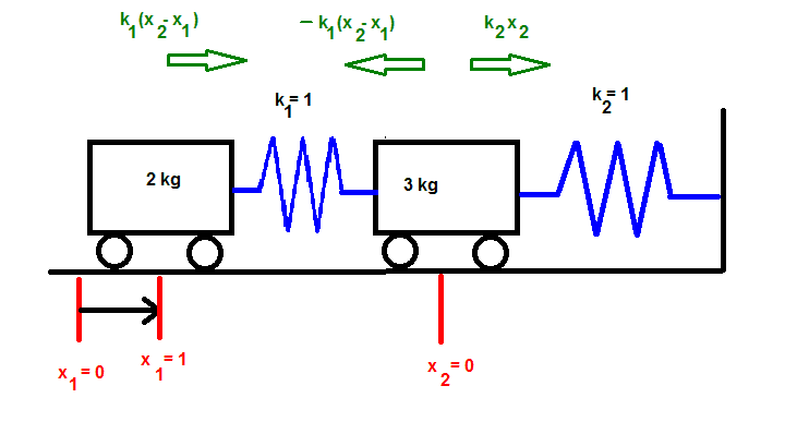 m_2x_2''=k_1x_1 + (k_2-k_1)x_2