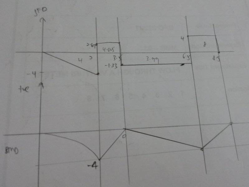- Another participant points out an error in the shear force diagram, noting that it should not be horizontal due to the presence of a distributed load, which subsequently affects the bending moment diagram.