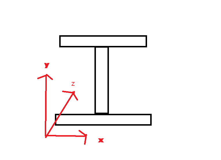 Anyway, applied loading is in the vertical y direction and bending is about the NA in the y direction about the xx axis. For equilibrium of bending and shear stresses, vertical shear in the xy plane exists on the front and back faces of a cubed element , and complimentary longitudinal stresses occur on the top and bot faces in the xz plane. There is nothing going on in the side yz plane faces since there is no bending taking place in the x direction about the yy axis, the beam supports are at either end along the z axis..