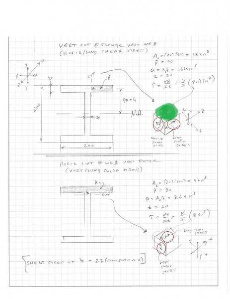 in the flange cube, I didn't show the small vert shear stress which exists downward on the left face, and with its accompanying longitudinal stress which lies on the green area.
