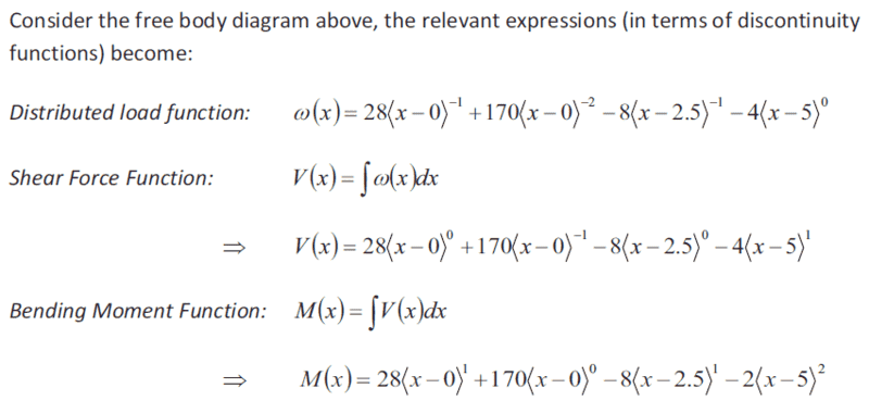 The discussion revolves around calculating shear force and bending moment graphs for beams subjected to various loads, including point loads and distributed loads. Participants seek clarification on methods, particularly the use of discontinuous functions, and express confusion about dividing loads into regions and determining boundary conditions.