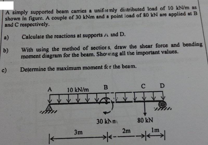 - One participant questions whether the bending moment should theoretically end at zero, expressing uncertainty about their calculations.