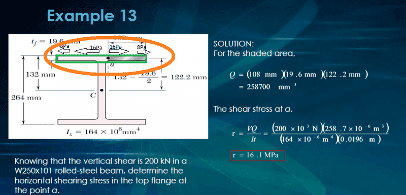 - Clarifications are made regarding the difference between average shear stress and actual shear stress, emphasizing that shear stress varies along the flange width.
