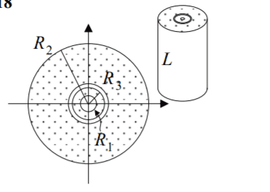There is a capacitor (llenght ##L##) made of a conductor (cylinder of radius ##R_1##) and a cylindrical surface (radius ##R_2##). It is charged with a potential ##V_0##, then it is isolated.