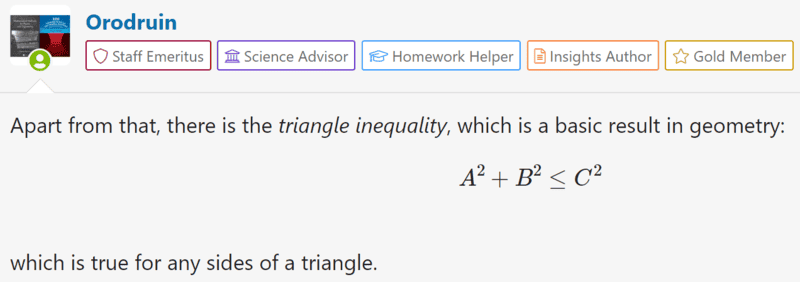 - Some participants discuss the implications of the triangle inequality, asserting that the sum of the lengths of any two sides of a triangle must be greater than or equal to the length of the third side.