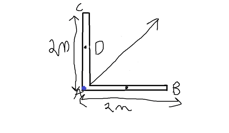 The figure shown consists of two rods at right angles to each other and each is uniform of 2m length.