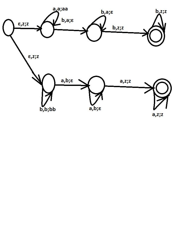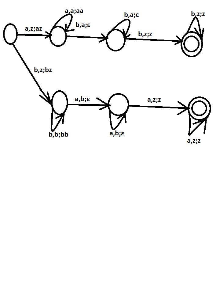 I have to show that the language [tex]\left \{ w\epsilon \left \{ a,b \right \}^{*}:w=a^{m}b^{n},m\neq n \right \}[/tex] is accepted by a pushdown automaton.