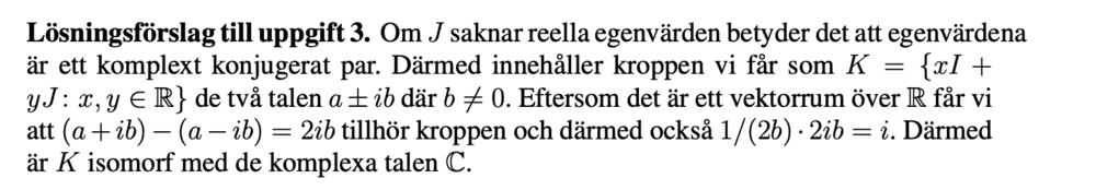 Show that ##\mathbb{C}## can be obtained as 2 × 2 matrices with coefficients in ##\mathbb{R}## using an arbitrary 2 × 2 matrix ##J## with a characteristic polynomial that does not contain real zeros.