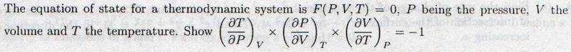 1) What's the purpose of the solution showing that T=T(P,V) and then F( P,V,T(P,V) )? Couldn't I just as easily have said V=V(P,T) or P=P(V,T) and modified F accordingly?