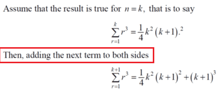 Therefore adding the ##k## to ##k+1## yields;