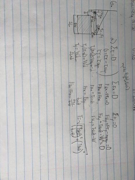 components of the reaction force at the hinge in terms of W, L, d and ϴ (c) Find the minimum