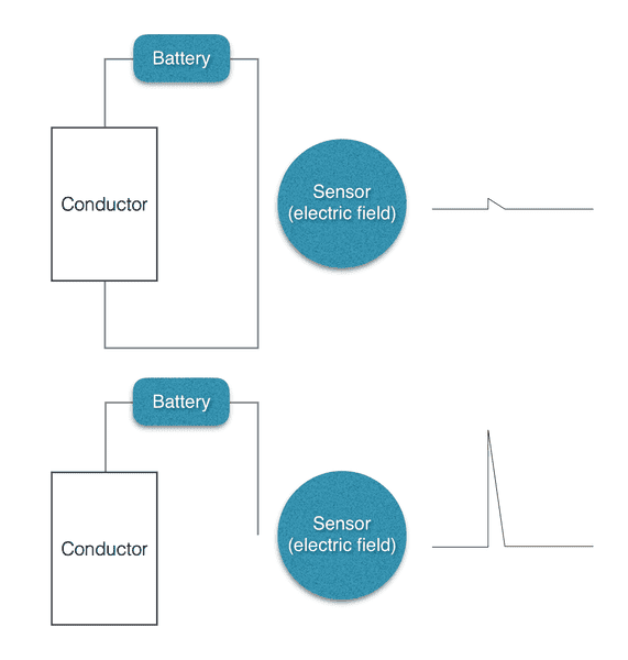 As soon as the circuit is completed (we connect the conductor at both ends) the signal we detect on our sensor is either attenuated or disappears altogether…