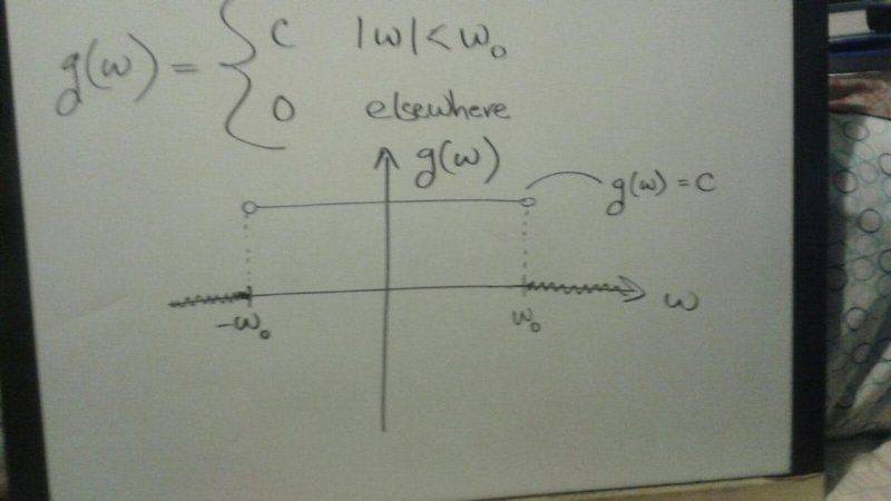 Assume a wave packet is has contributions from various frequencies, give by g(ω)=C for |ω|<ω0, and g(ω) =0 for elsewhere.