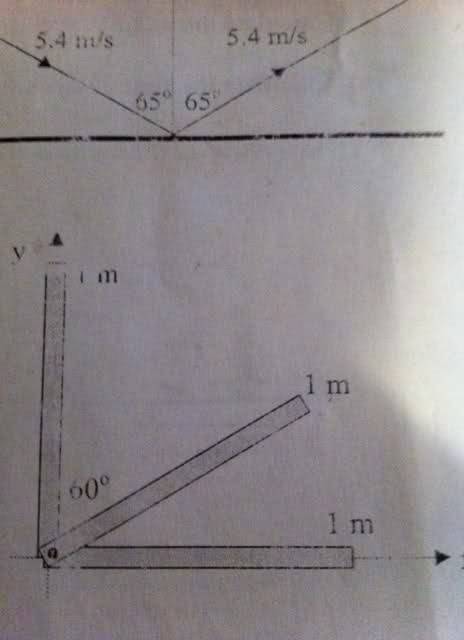 "Three uniform metre sticks each of mass M are attached together as follows: Stick 1 lies along the y-axis from y = 0 to y = 1.0m. Stick 2 lies along the x-axis from x = 0 to x = 1.0m. Stick 3 makes an angle of 60 degrees with the y axis. Find the x and Y coordinates of the centre of mass of the system of three metre sticks, and marks its approximate location on the diagram of the three sticks."----Sorry, its kinda upside down :)