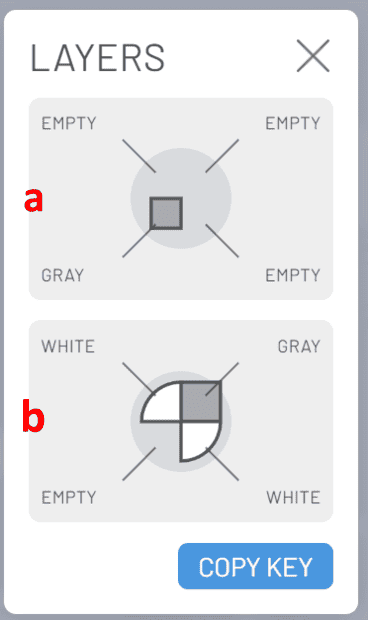- And there can be up to four layers. (There is always a bottom later; if there is a second layer, it is on top of that; if there is a third later, it is on top of that, etc. There are no "empty" layers.)