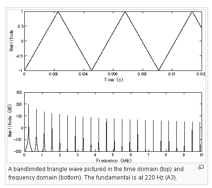 I see that according to the internet the mathematical description of a triangular wave is rather complex, so I'll try to stay as far away from that as I can, because I'm a bit rusty.