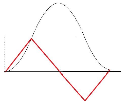 I understand that if you integrate a square wave you get a triangular wave on the x-axis. But If you integrate that triangular wave you get something resembling a sineusoid. (something about it being the first harmonic of the triangular wave I believe)