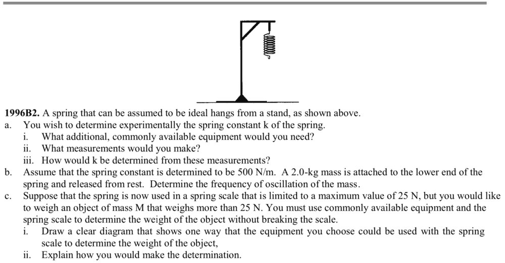 I think you could try to solve for the forces based on when the spring falls from an incline at various angles theta, but I am not sure. Or spring potential energy? I'm really confused.