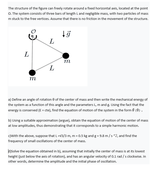 Height from what baseline? And what about the angle θ?misterpicachu said:the mass centre gave me (√3/2)*L and then I used it as the height in the potential energy formula, is that ok?