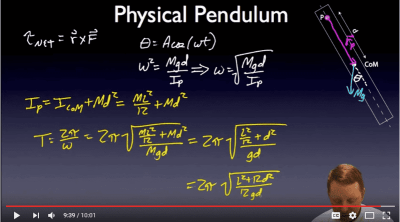 I've done lots of reading and watched lots of videos, I know simple calculus, I understand moment of inertia and torque, small angle approximations and parallel axis theory. I've done dimensional analysis which resulted in: