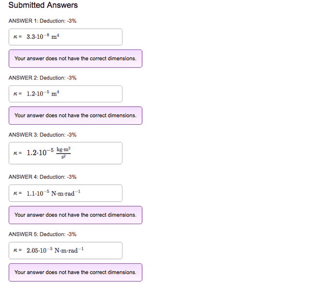 I know the formula for find K is T = 2*pi*sqrt (I/K), but I kept getting the wrong answer. Please help me out.