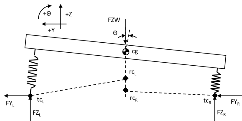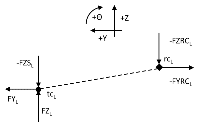IXθ¨X=FZSL⋅tcyL−FZSR⋅tcyR+FYRCL⋅(cgz−rczL)+FYRCR⋅(cgz−rczR)