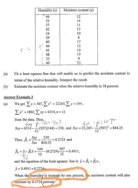 For the first question , why when the humidity increase by 1 percent , the moisture content will increase by 0.2727 percent ? Shouldn't it the moisture content will increase by 0.2727 + 0.4911 percent when the humidity increase by 1 percent ?