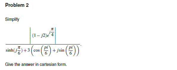 $$D = \sinh (j \pi/6) + 3 (\cos(\pi/6) + j \sin(\pi/6)).$$