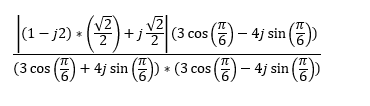 As far as I can see you are on the wrong track. Your expression is of the form ##N/D##, where the numerator is ##N = |(1-j2) e^{j \pi/4}| ## and the denominator is