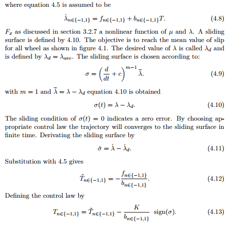 The controller is supposed to force \lambda to a certain value. The optimal input is provided as well. So the reference block should be \lambda_desired. That's correct and then it goes to SMC and it gives the input to the system. What is that system? is it the dynamics of the slip? I have only the dynamics in mathematical way and no transfer function. You see that the dynamics of the slip is: