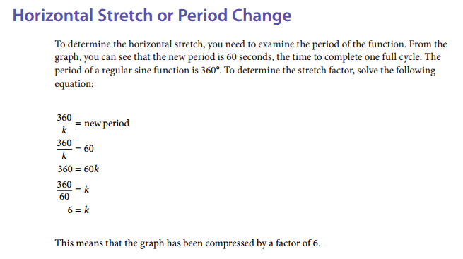 Also, I have searched the internet for other explanations on this question, and they all explain using radians and pi ( to find k), I have not learned this method in my course, and think I should stick to the way I have been taught while answering this question. Thanks :)