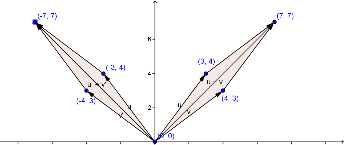 And $\textbf{u + v} = \begin{bmatrix} 7 \\ 7 \end{bmatrix}$