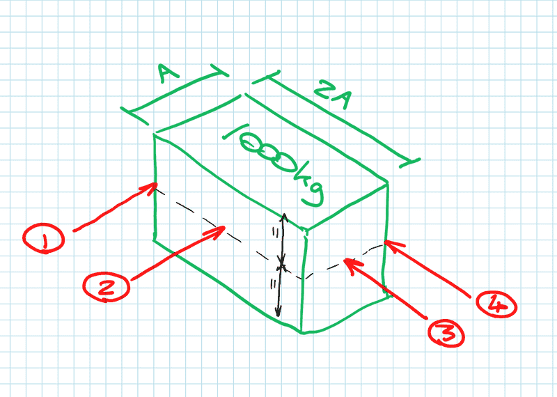 If a 1000kg block is placed on a flat surface (say coeff. of friction = 0.4), what force does it take to slide if it loaded eccentrically, i.e. at the far edge of the block?
