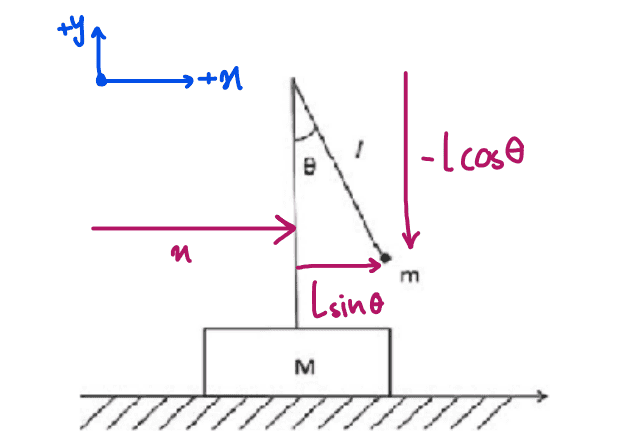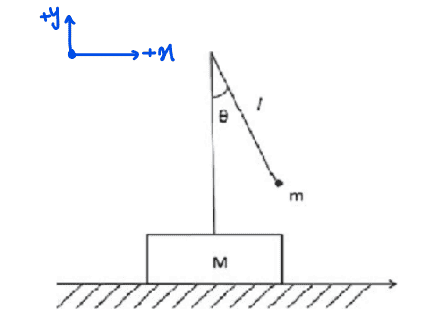 - A simple pendulum with mass ##m## and length ##L## is placed on a block with mass ##M##. The block can move freely on a frictionless horizontal surface. Find the equation of motion and the frequency of small oscillations.
