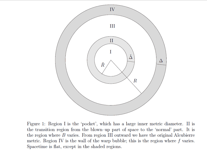 The discussion revolves around the concept of warp bubbles in higher dimensions, as presented in a referenced article. Participants explore the implications of the warp bubble's geometry, particularly the relationship between its outer surface area and the inner pocket volume, raising questions about the nature of space and dimensionality.