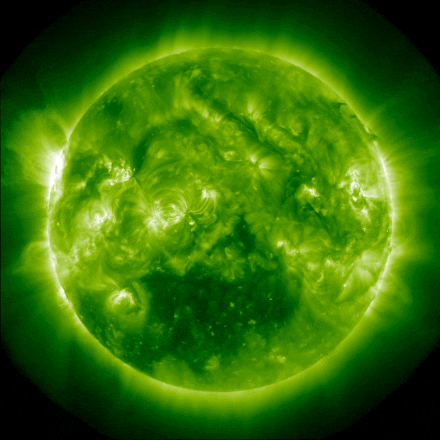 After a Termination Event, the sun roars to life–"like a hot stove where someone suddenly turns the burner on," McIntosh likes to say. Solar ultraviolet radiation abruptly jumps to a higher level, heating the upper atmosphere and dramatically increasing aerodynamic drag on satellites.
