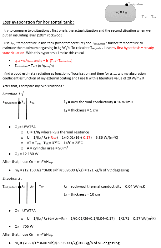 Hello everyone, I'm looking to estimate the variation of degassing on a horizontal tank of VC (vinyl chloride) due to solar radiation.