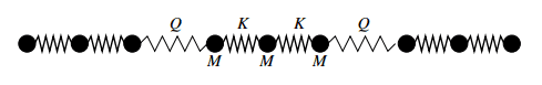 The chain consists of molecules, which has three atoms, each with mass ##M##. Spring constant between the atoms inside the molecule is ##K## and between the molecules ##Q \ll K## as shown in the picture.
