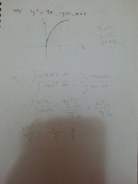 Integral from a to b of (x[f(x)]^2.dx) / Integral from a to b [f(x)^2].dx3. I drew the graph and found the region enclosed as per their requirement. For a, I got the function in terms of y so y=3 sqrt (x) then I plugged it into the equation provided in 2. I took the bounds as x=0 and x=1 for the integration but I don't think this is the way to do it for inequalities.