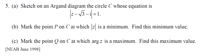 ok for part (a) this is a circle with centre ##(\sqrt{3}, -1)## with radius =##1## thus, we shall have,