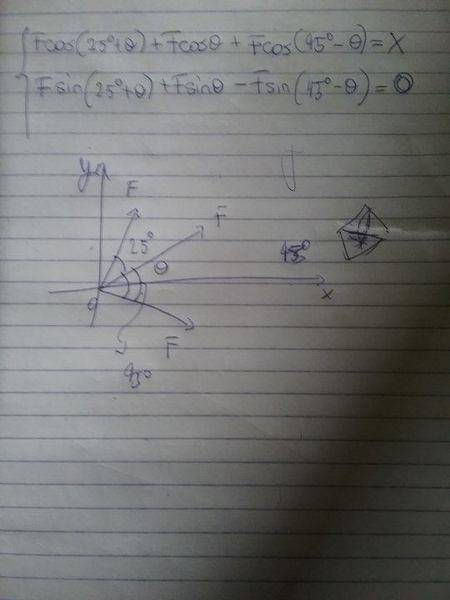 - One participant proposes that the sum of the x components must equal the required force, while the y component must equal zero, leading to a system of equations.