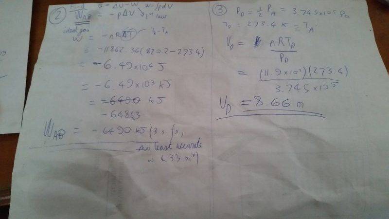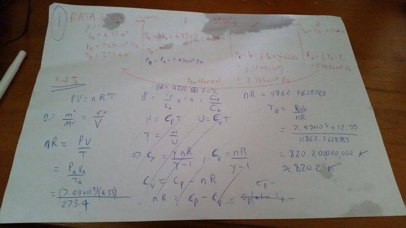 The forum discussion centers on solving an ideal gas problem involving a cyclic process with a specific heat ratio (gamma) of 1.4 and an initial volume (V_A) of 4.33 m³. Participants confirm the correctness of answers for the first three questions and provide a hint for the fourth question, referencing the adiabatic process equation P1V1^γ = P2V2^γ. This equation is crucial for analyzing the behavior of gases under adiabatic conditions.