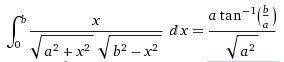 The closest one is the substitution $U=\frac{r^2}{2}-\frac{R^2/2}+x^2$, which gives some arcsin. I change it into arctan, but it is not the arctan mathematica shows. I guess it has something to do with the $\sqrt{R^2 - x^2}$, since it will blow up at R. May need delta function to handle it.