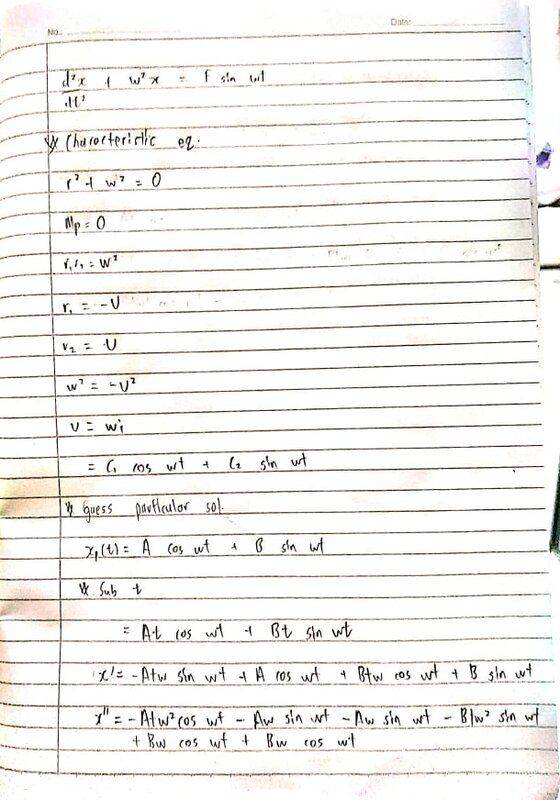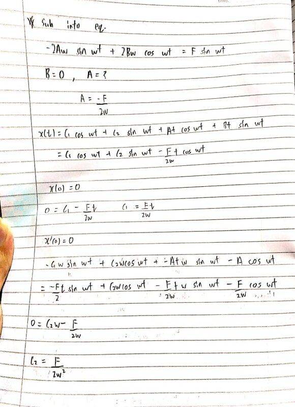 I get the sol = C1 cos wt + C2 sin wt, but i always get 0 when I plug into the equation, anyone can help me please.