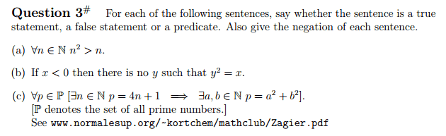 a) Predicate. Negation is ¬(∃n ∈ N n²>n)